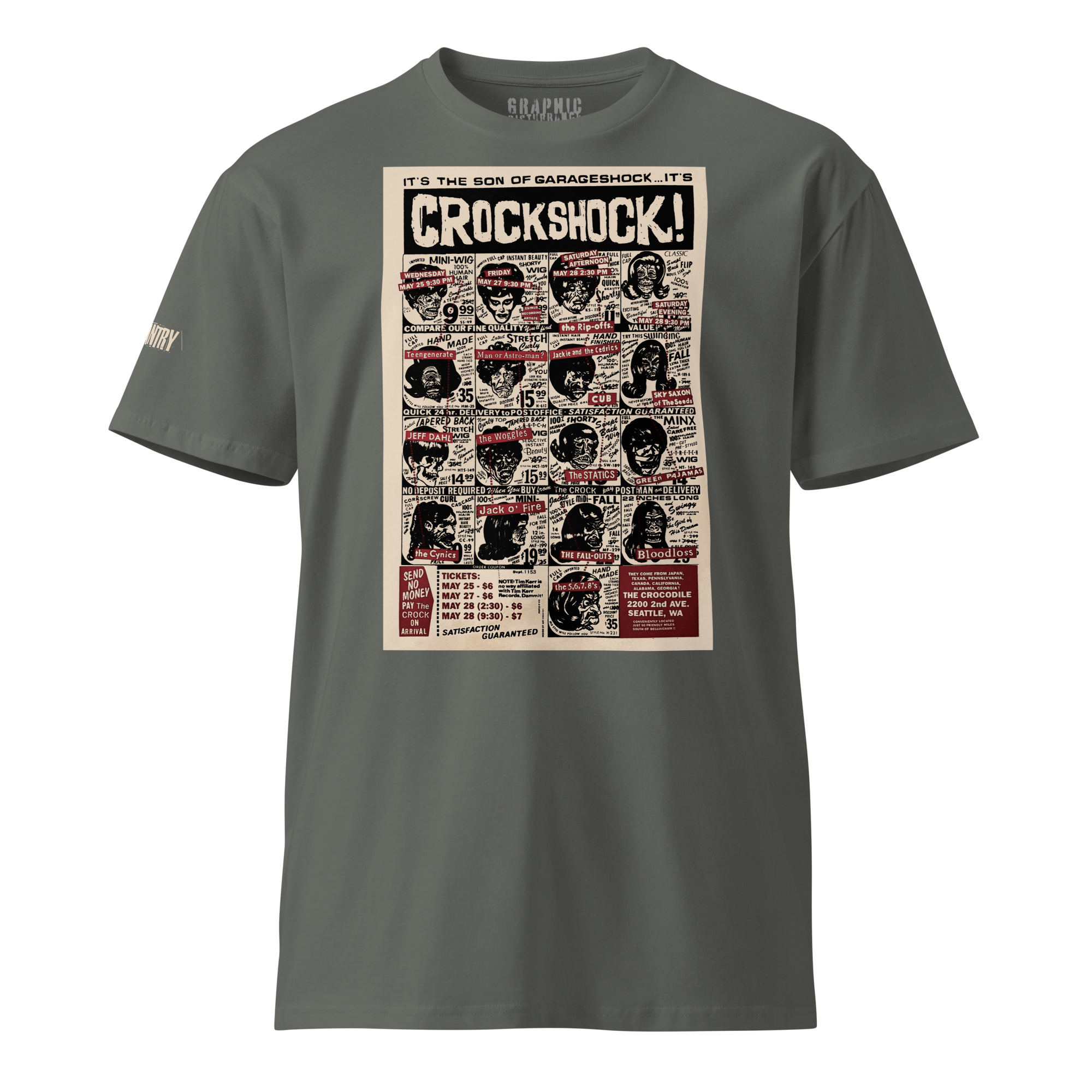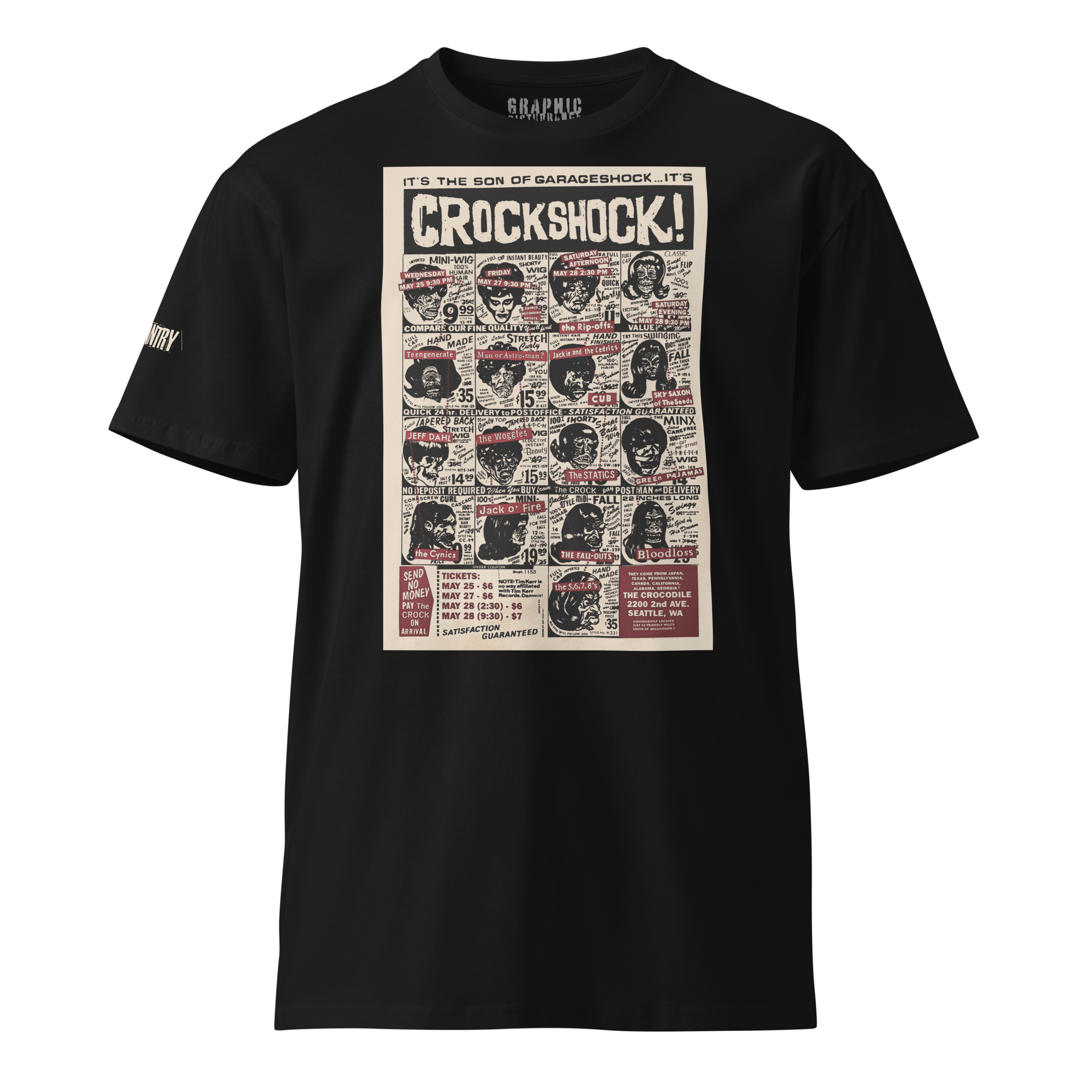 Art Chantry's Crockshock was created for a Seattle event that wanted to get in on the success of Garageshock. Held at the famous Bell Town haunt The Crocodile Cafe, aka The Croc, it featured many of the usual suspects and allowed another venue to be able to introduce the world to these bands and their mayhem in a larger venue. It also allowed the bands, often from places as far away as outer space itself, to play two shows in the PNW in one long holiday weekend.
