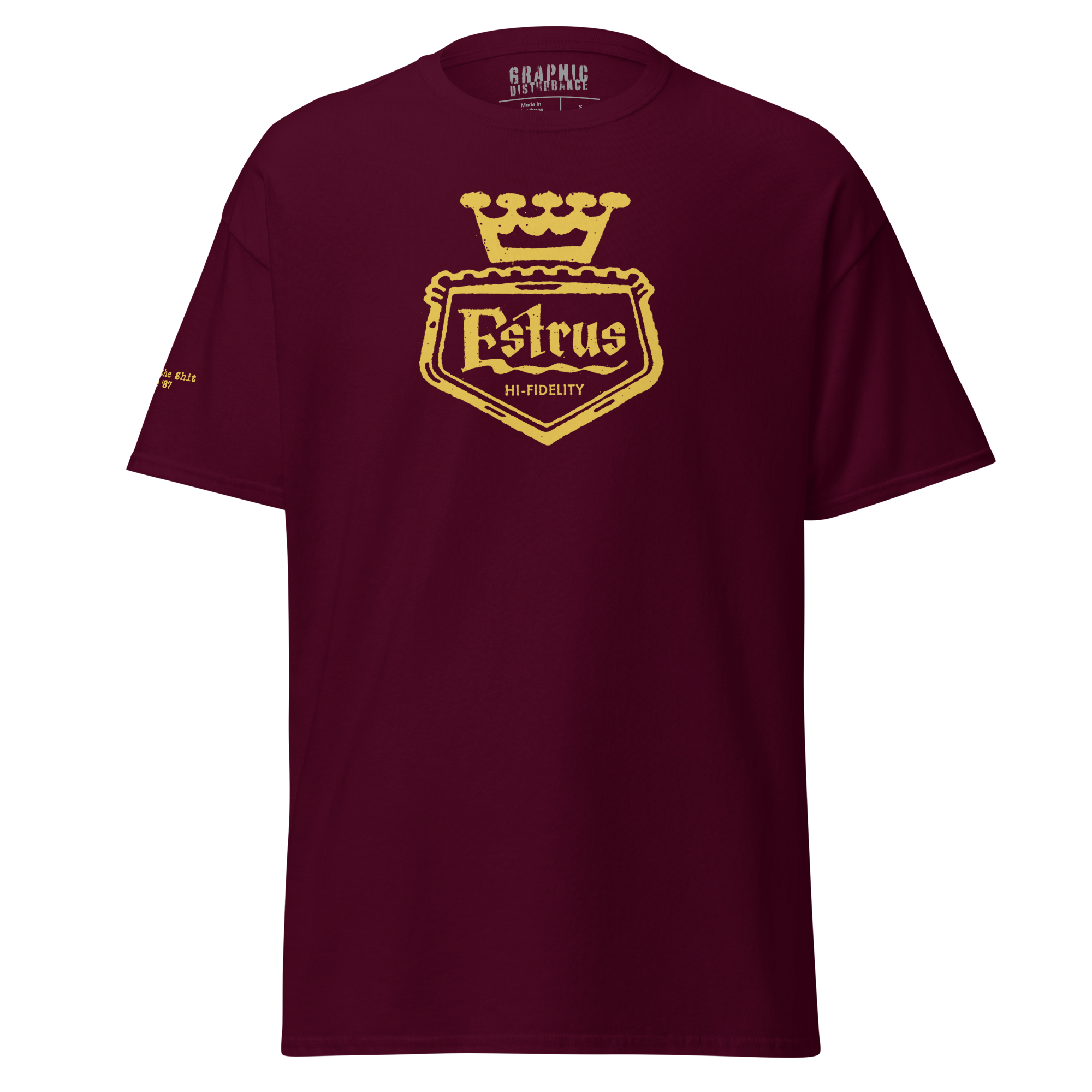 Hailing from the Estrus days or yor, we proudly present the maroon Hi-Fidelity logo T. To get the right color, this T is offered in the Gildan brand and, just to be nice, we offer you the same classy design in black because it just looks so swank. However, Dave Crider would want you to know, it ain’t the real McCoy. No matter: your body, your choice.
